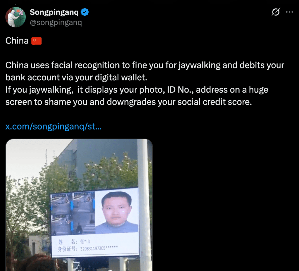 In that same vein, another often-repeated rumor is that cameras in China will photograph jaywalkers, remove money from their bank accounts, and then dock their social credit points.